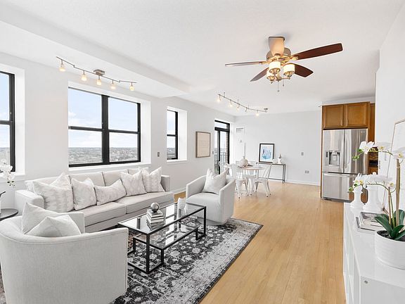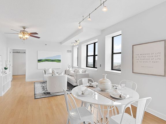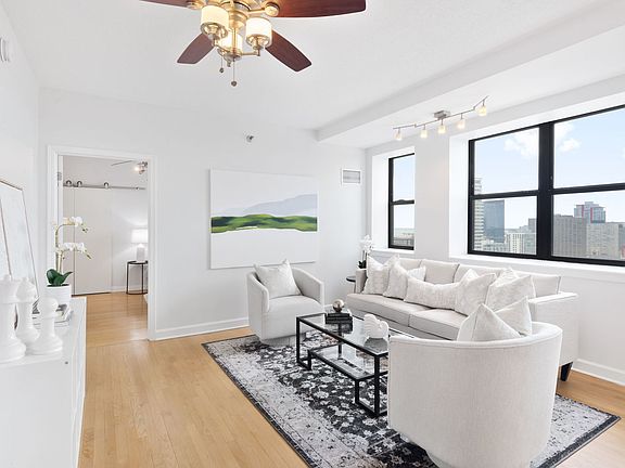 Sprawling high floor two bedroom, two bathroom condo with prime South Loop location is the epitome of move in ready. Foyer entry leads to the spacious open concept layout flooded with natural light from the south, east, and west facing views of Lake Michigan and the cityscape. The space offers a seamless flow between the living and dining area, excellent for entertaining, with hardwood floors throughout and a large private balcony. Contemporary kitchen has all stainless steel appliances, granite countertops, and plenty of cabinet storage. The primary suite has its own private balcony, an oversized walk-in-closet plus a second closet with contemporary barn style doors, and an ensuite primary bathroom with dual sink vanity and a large glass enclosed shower with multiple showerheads. Spacious second bedroom with ample closet space and guest bathroom with dual sink vanity, soaking tub, and separate shower. The entire condo has been freshly painted and offers in-unit laundry plus an additional storage locker. Premium parking space in the exclusive attached garage available for 25K. Building amenities include front door staff, exercise facilities, package receiving, and onsite management and maintenance. Excellent South Loop location with many neighborhood parks and just minutes from larger attractions like Grant Park, Museum Campus, the Lakefront Trail, shops, restaurants, and nightlife with convenient access to the Loop, transit, and expressways.