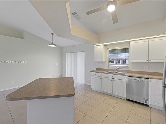 Welcome to your perfect Florida retreat! This beautifully updated 4-bedroom, 2-bathroom home is nestled along a freshwater canal, offering stunning views and a peaceful atmosphere right from your screened-in lanai. Step inside to find a spacious, all-tile interior freshly painted both inside and out. The heart of the home is a chef-inspired kitchen featuring a large island perfect for meal prep or entertaining guests. The open living area provides plenty of room to relax and unwind, while the inside laundry room adds everyday convenience. Centrally located near shopping, top-rated restaurants, and the world-famous Southwest Florida beaches, this home offers the ideal blend of tranquility and accessibility. ? Lawn service included in the rent just move in and enjoy!