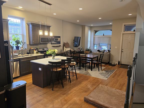 Oversized 2 bedroom 2.5 bath duplex down in prime Noble Square location. Steps to public transportation and the vibrant entertainment that nearby Wicker Park has to offer. This unit features 14 foot ceilings and large windows that allow for ample natural light to permeate through the apartment. The kitchen has been recently updated and feature quartz countertops, a large breakfast bar and stainless steel appliances. The bathrooms have new vanities and finishes. In unit laundry. Common backyard space offers pet owner the ability to take their animals out in a fenced area. Dogs and cats are allowed. One time move in fee. Flexible start date.