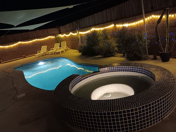 Step outside to your private pool and jacuzzi, perfect for soaking up the sun or relaxing under the stars. The covered patio is ideal for outdoor dining, family gatherings, or simply lounging in the warm desert breeze.