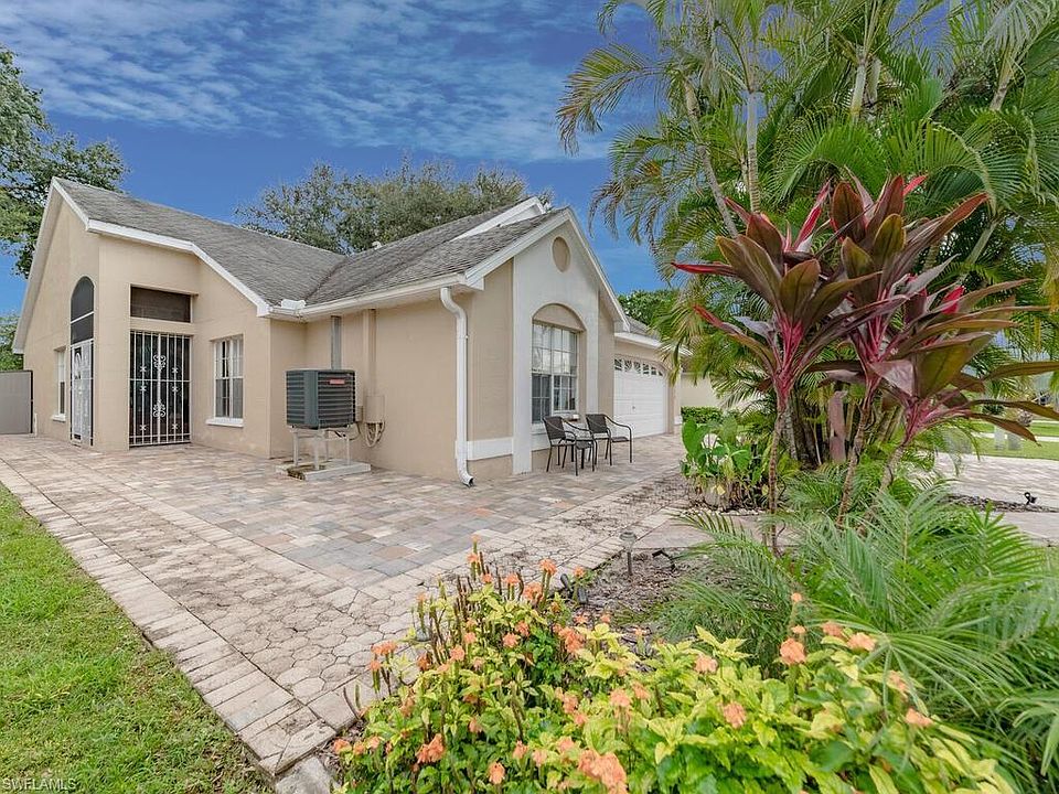 Welcome! This beautiful home is located in a very popular, pet-friendly community with extremely low HOA fees and with almost 1500 sqft under air. 3 bed 2 baths, 2 car garage beautifully updated opened to the living room kitchen with granite countertops and stainless steel appliances.Tile and wood laminate flooring. New A/C system, the whole attic has been insulated (big savings!), electric roll down hurricane shutters on the back of the house, fully renovated master bathroom. The driveway and the pathway of the main entrance widened/brick pavers, there is a huge tile deck in the back yard overlooking a preserve and freshly painted interior. There is an opportunity to use two bedrooms and one bathroom as your primary residence while renting one-bedroom, and one bathroom for income purposes and maintain complete privacy! Numerous amenities with heated pools, gym, tennis, pickle-ball, a fishing pier, and picnic areas... In about 25min to shopping, dining, entertainment, quality healthcare, airport, and the beautiful beaches of Fort Myers, Sanibel/Captiva Islands, and don't forget the training fields of Hammond Stadium and Boston Red Sox! Look around, Fall in love, and Make an offer!