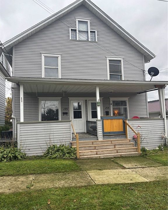 Well-maintained duplex in Hornell! Mirrored sides with living room, formal dining, kitchen, three bedrooms, bathroom, front porch, mud room, attic, full basement, and a 3-car garage for your storage needs. 153 has a built-in tenant and mid-century wood floors. 155 has just been updated with vinyl flooring, carpeting, new lighting, and fresh paint throughout. Whether you want to move in to the vacant side and reduce your monthly mortgage or get an additional tenant as an investment property, this home could be an excellent opportunity for income.