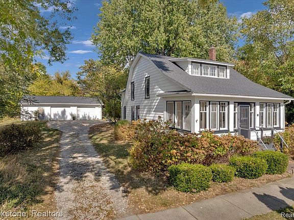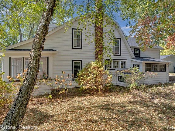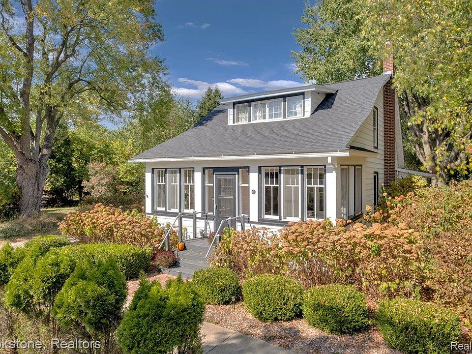 This one-of-a-kind Victorian farmhouse offers timeless charm paired with thoughtful modern updates—just a short stroll from the heart of downtown Metamora. Nestled on a beautifully landscaped corner lot with mature trees and blooming hydrangeas, this home provides both privacy and convenience in equal measure. Step inside and discover original hardwood floors, custom built-in bookshelves, and stunning architectural details throughout. Enjoy your morning coffee from the Metamora General Store and unwind in the sun-drenched four-season room, surrounded by beautiful custom windows—perfect for reading or relaxing. The spacious kitchen features open shelving and abundant natural light, seamlessly flowing into a functional mudroom. A main-floor bedroom offers flexibility as a guest suite, office, or convenient primary bedroom alternative, paired with a full bathroom that includes a vintage clawfoot soaking tub for a touch of luxury. Upstairs, you’ll find three generously sized bedrooms with lofted ceilings, ample closet space, and large windows that fill the rooms with light. An additional ensuite bathroom with a walk-in tiled shower and soaking tub. Outside, the large three-car detached garage offers room for vehicles, tools, or hobbies. Just steps from the iconic White Horse Inn, boutique shops, and cozy cafes, this home is perfectly situated to enjoy all that Metamora has to offer.