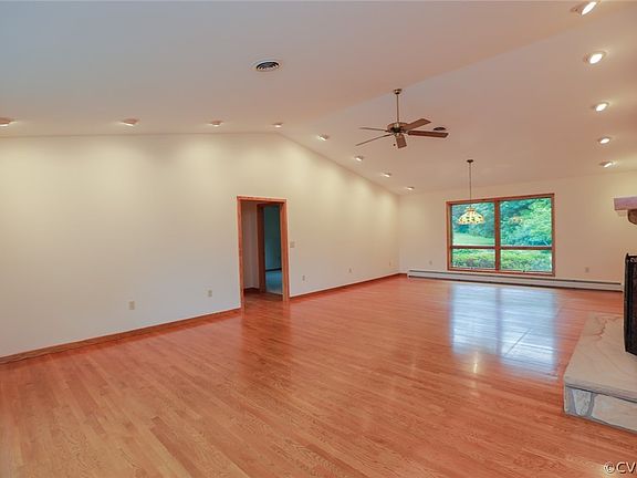 - Bedroom on Main Level, Ceiling Fan(s), Cathedral Ceiling(s), Dining Area, Eat-in Kitchen, Fireplace, Bath in Primary Bedroom, Main Level Primary, Pantry, Recessed Lighting