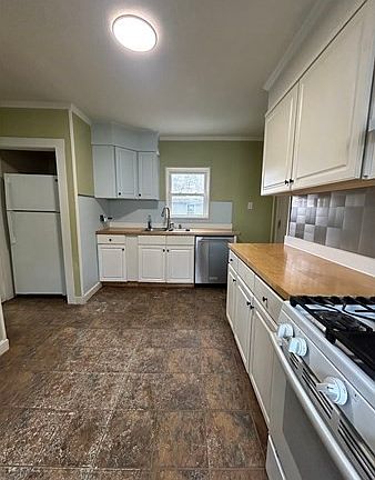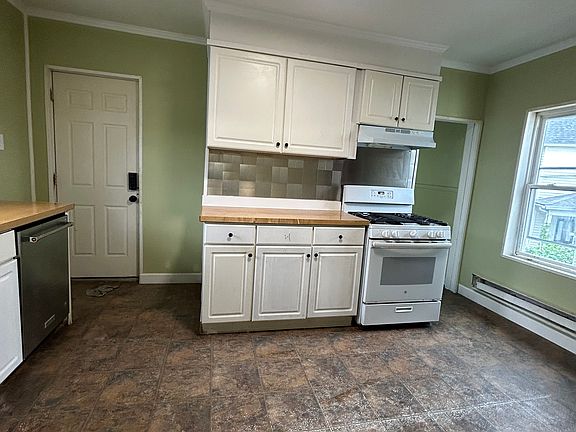 Centrally located, this inviting home stands ready to welcome its fortunate inhabitants. The freshly updated, fully equipped kitchen with a pantry area offers a delightful space for culinary exploration, features gas cooking, refined crown molding and a charming backsplash for design and function. This spacious unit offers three+ bedrooms and one full bathroom, providing ample space for both storage and comfortable living amid 1396 square feet. Unit is located on second and third floors and offers a blend of historical charm with modern convenience. Gas heat, one off-street parking space and a 12 month lease. 1 pet ok. Available today! $39 per applicant fee to Rentspree for credit and rental history reports.