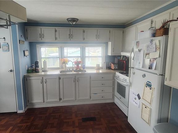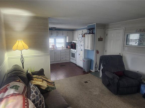Move in ready 2 bedroom home in Scotty's Manufactured Homes 55+ community.  Very low lot rent of $450 that includes water, sewer, trash, recycling and snow plowing of community roads.  Easy 1 floor living.  Entire home was remodeled 2 years ago.  Heating system and water heater are only 2 years old.  Home is well insulated and heating costs are low.  Roof was coated 2 years ago.  Home is in very good condition and shows pride in ownership.  1 year old large walk in shower.  Gas heat and cooking. Refrigerator, washer, dryer and window a/c's included.  Patio with awning to enjoy the outdoors.  Storage shed included.  Off street parking.  Country living with quick and easy access to grocery stores, drug stores and restaurants.  All residents must be approved by the community.  Home is sold as-is.