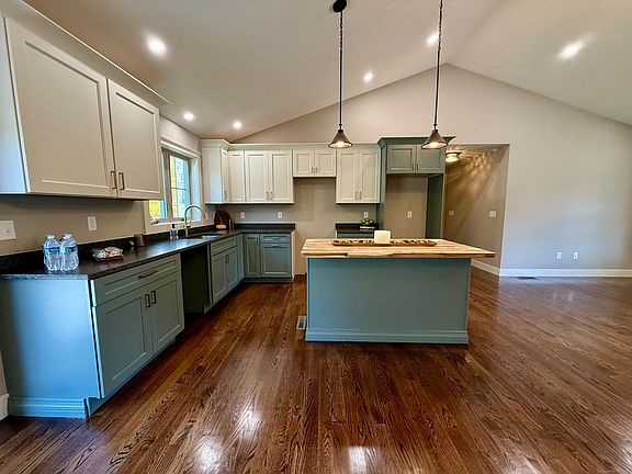 Ranch style homeHigh end productsHigh efficiency windowsButcher block island countertopCathedral ceilingLuxurious build
