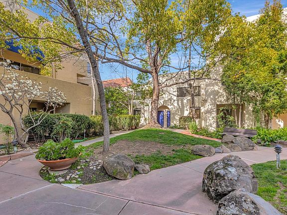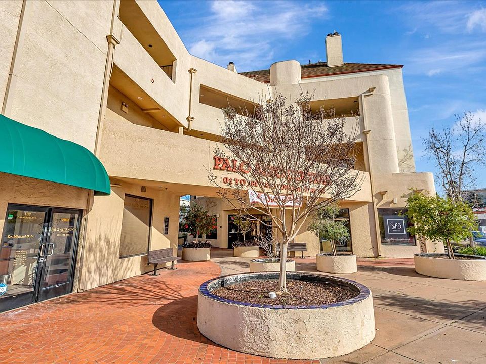 Move-in ready ground floor unit with 2 primary suites in Desirable Palo Alto Central, a gated community located at the end of California Ave (Palo Alto's 2nd downtown). Open floor plan with new floorings throughout, kitchen connected to living room, opens to a private patio that overlooks picturesque courtyard. In-unit W/D. extra storage. Secure underground parking, elevator to main floor. Also guest parking and community pool/spa. Steps to Caltrain station, northbound trains take you to San Francisco, enjoy games at Giants ball park and Warriors chase center. Southbound trains take you to downtown San Jose, Google's future campus. This gated community is neighboring Mollie Stone grocery store, dozens of shops & restaurants, Peers Park. Enjoy year around Farmers Market on Sundays, and Summer free live bands. Biking distance to Stanford University, Stanford Hospital, University Avenue business district, Town and Country, Stanford Shopping Center. Short drive to Tech Giants like Google, Meta. No rental restrictions. HOA Fee covers earthquake insurance, private garage parking, elevator access, water & garbage, pool/spa etc. Unit facing Park Blvd. Near Park & California Ave.*F is on the quiet side of the community away from train track