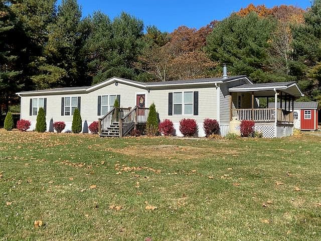 This immaculate 3 bedroom 2 bath home sits on 1.76 acres with a fantastic view. Inside you have a unique open floor plan. The kitchen has an island and looks into the den with rock fireplace and the dining room separated by partial walls and columns. The home has an entrance foyer, large living room, laundry room and separate mud room as well. Inside you will find laminate flooring throughout. Outside you have a side covered deck to enjoy nature, an open back deck, newer outbuilding and a circular driveway. This home is gorgeous and won't last long. Make your appointment today.