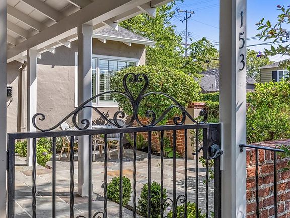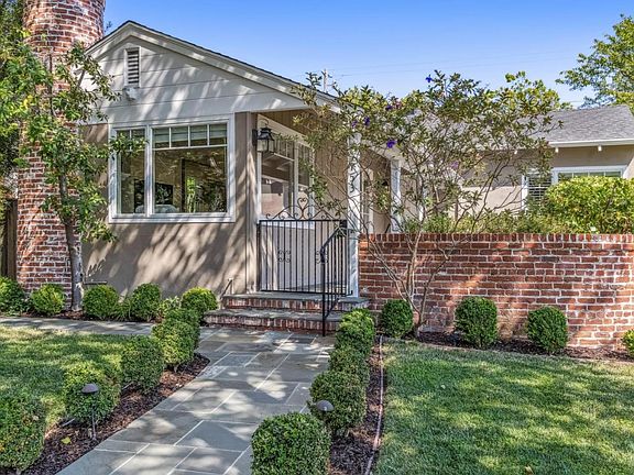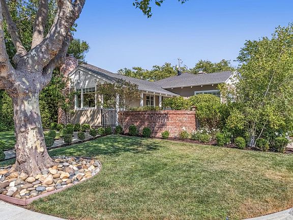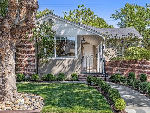 So very special...so very charming! This distinctive single level home is situated on one of the most endearing tree lined streets in all of San Mateo. An absolute expression of architectural character with stunning curves, radiant colors and an overdose of curb appeal. Gleaming hardwood, fresh paint, recessed lighting and natural light welcome all who enter. Completely open floor plan that unites the living area, dining room and family kitchen provides an ambiance for easy flow and function. The large living room with corner fireplace, sculptured ceiling, crown moldings and custom built-in cabinet. Spacious dining area highlights a separate entry, elegant chandelier and large windows. Bright kitchen, both striking and impressive with its marble, oversized custom island, pantry and state of the art appliances. Off the kitchen rests a desk-like/office area. All bedrooms include shuttered windows and organized closets. The primary has an abundance of light and an adjoining bath with a stylish sliding barn door to amplify luxury. The yard sports an alluring fireplace and serene wrap around grounds for relaxation and enjoyment. Central A/C, two car garage and storage space galore. Superb school district, Close proximity to downtown, Central Park, public transportation.