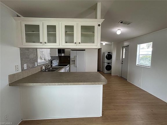 Welcome to Holiday Manor a 55+ Community in Naples! This spacious 2 bedroom, 2 full bath home is move in ready and comes with an American Home Shield Warranty even though it comes with 2022 A/C, water heater and newer washer and dryer. You'll love the bright white cabinets, white appliances and new flooring throughout. Holiday Manor is an active adult community with direct GULF access and close proximity to the most beautiful beaches around. If you love boating, fishing, kayaking, dolphin watching, shelling and so much more, this is where you'll want to be. With plenty of fine dining and shopping options and the East Naples Community Park (home of the US Open Pickleball Championships) just minutes away, you'll love the convenience of living here. Whether a full time residence or a winter getaway, this community has it all including community pool, billiards and social events that will keep you having fun!