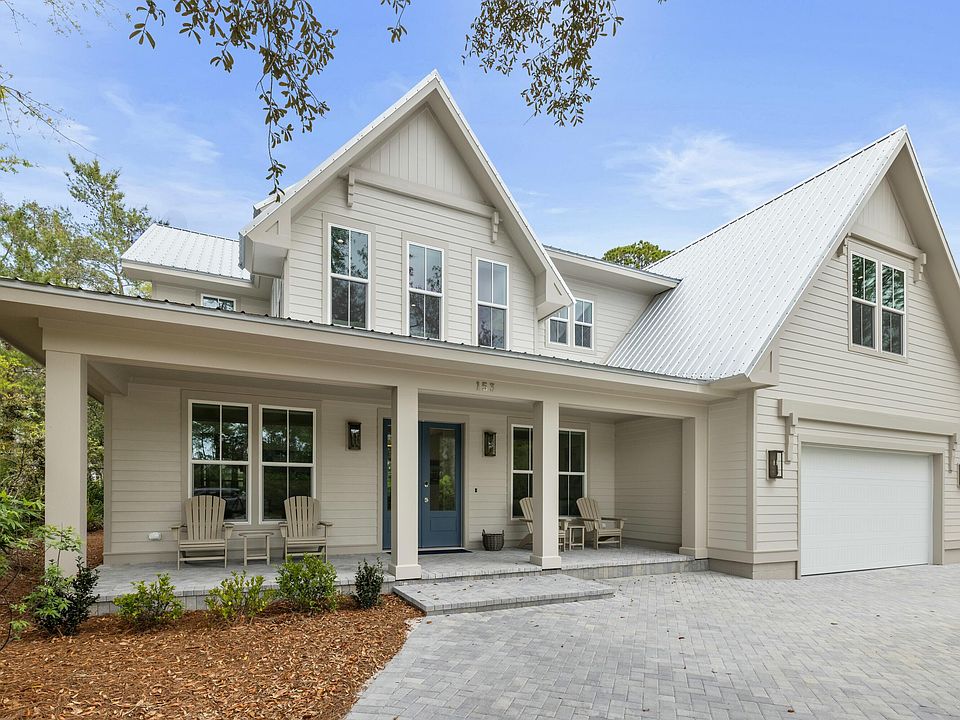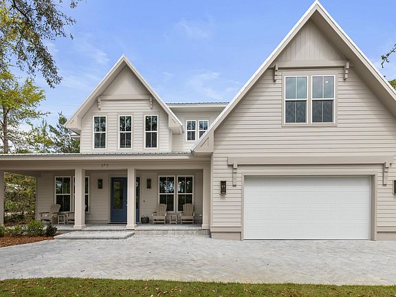 Turn-key and fully furnished, this new construction home offers 4,030 sq ft of thoughtfully designed living space with 5 bedrooms and 4.5 baths. Ideally located just behind The Bay, you're one minute from the boat ramp and only ten minutes from public beach access.Inside, soaring ceilings and designer finishes of ceramic, glass, and marble set the tone. The main level features a gourmet kitchen with custom cabinetry, Taj Mahal quartzite countertops, Cafe gas appliances, and an open living/dining area that flows seamlessly to the screened-in pool, hot tub, and brick-paver patio. A wine cellar and game room provide extra spaces for entertaining. This home offers two full master suites-one on the main level and another upstairs. The upstairs master includes its own ensuite kitchen and living area, creating a private retreat ideal for multi-generational living, extended family, or guests.