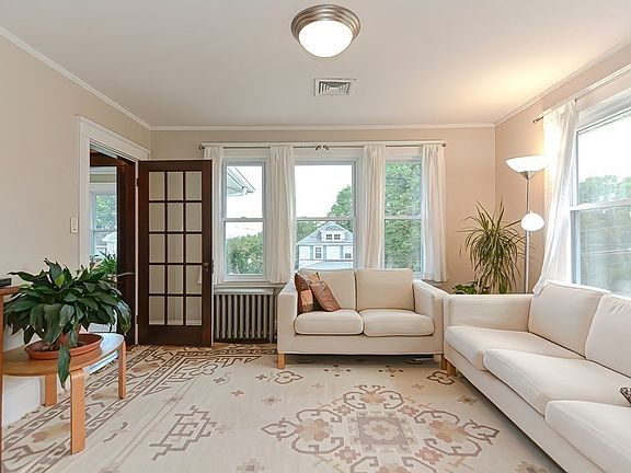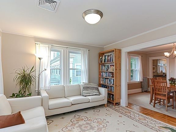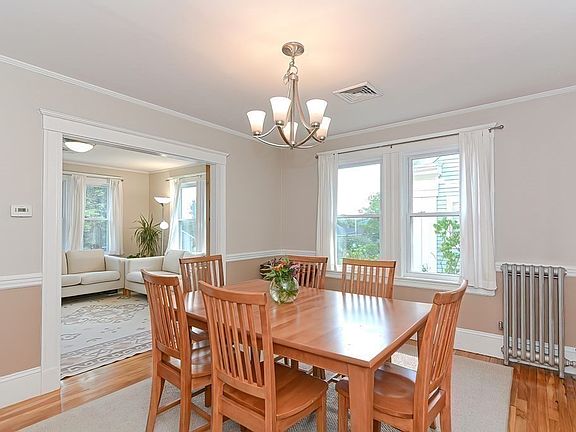 Gracious sun-drenched top-floor condominium located in a much-loved neighborhood in West Newton. Front porch w/ private entrance. Second-floor foyer has deep closet. Enter the bright living room, which opens to the dining room featuring chair rail and a charming built-in china cabinet. The kitchen has stainless steel appliances and granite countertops. Two bedrooms are separated by a hallway and full bath with white tile. Lovely front enclosed heated sunroom looks out to views of Boston. The rear enclosed porch looks out to the surrounding tree-lined neighborhood. Private basement laundry-O-the kitchen pantry is plumbed and ready for washer/dryer installation. Hardwood floors, Central air, Crown molding, lots of storage, garage and off-street parking—close to the Franklin Elementary School, Albemarle field, swimming pool, and West Newton Square with shops, restaurants, and Commuter Rail. Easy access to Mass. Pike and Route 128. Offer dues Tues 10 am 10/25/2022.