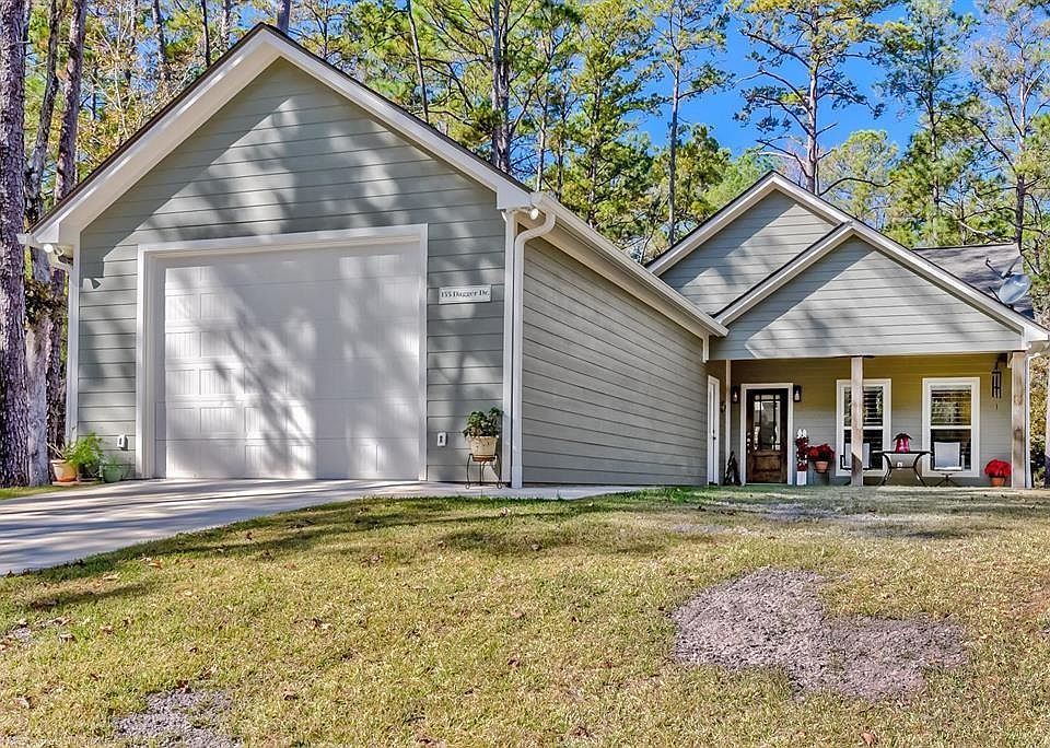Welcome to 153 Dagger, a stunning 3-bedroom, 2-bath home located in the desirable Rayburn Country community, offering the perfectbalance of comfort, functionality, and outdoor living. Built just two years ago, this home has been thoughtfully designed with high-endfeatures throughout including butler's pantry and custom shutters. The kitchen boasts custom upgraded finishes, beautiful cabinetry, anda large center island.A highlight of this property is the climate-controlled, custom-built oversized garage, specifically designed to fit a boat— with extended height and length, plus a wash sink and storage room. An extra custom concrete additional parking pad! Located inRayburn Country, residents enjoy access to a golf course, restaurants, and bar & grill options, all within minutes of multiple boatlaunches on beautiful Lake Sam Rayburn.