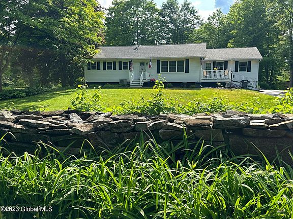 This pristine ranch is on 3.32 acres, beautifully landscaped with handmade rock walls and perennial gardens. 2 paved driveways. Totally updated inside and out. Large family room(built 2022) dining room , kitchen updated in 2022, living room, 2 bedrooms, one is a huge double bedroom, 2 baths, one with laundry . Freshly painted 2023. New treks decks and front porch. New windows, vinyl siding and roof in 2021.