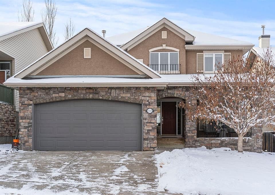 Welcome to 153 Crestridge Way SW. A beautifully appointed 2-storey home with walkout basement. Featuring 5 bedrooms and 3.5-bathrooms in the coveted community of Crestmont. Offering an exceptional balance of thoughtful design, incredible natural light, and breathtaking unobstructed views of the Rocky Mountains and river valley. With 2526 sq ft above grade and an additional 1302 sq ft of professionally developed living space in the walkout basement, this home provides over 3800 sq ft of versatile family living. The main level impresses from the moment you step inside from the East facing front porch. Greeted by a large foyer with an open-to-above staircase, rich dark laminant flooring, and expansive windows that showcase the surrounding landscape. At the heart of the home is a chef-inspired kitchen featuring double islands, one being granite, along with a granite servery. Extensive cabinetry, a huge walk-through pantry, a formal dining area and bright breakfast nook with access to the upper deck, the perfect place for barbecuing or watching the sunset. The living room is warm and welcoming with a gas fireplace surrounded by a granite hearth and custom wooden mantel. A front flex room makes an ideal office or library, and a spacious mudroom and powder room complete the main level. Upstairs, the primary suite is a true retreat, offering sweeping mountain views, a pair of walk-in closets, and a luxurious spa-style ensuite with dual vanities, an oversized shower, and a deep soaker tub. Two additional large bedrooms, a full 4-piece bathroom, and an upper laundry room ensure everyday practicality. The walkout lower level expands the living space with a large recreation room anchored by another gas fireplace with a beautiful granite hearth, a stylish wet bar, and multiple zones for media, games, fitness, or hobbies. Two additional bedrooms and a full bathroom offer flexible living options for teens, guests, extended family, or home-based work. Large windows and direct patio access make this level bright and inviting year-round. Outside, the beautifully landscaped yard features established perennials, mature trees, and a lower garden area with rhubarb, raspberries, strawberries, and a variety of herbs. Enjoy summer evenings on the covered patio or morning coffee on the charming front porch. Additional features include a double attached garage, central A/C, Central Vac, walkout access, and a spacious deck with glass railing to maximize the view. Located on a quiet street just minutes to the Crestmont Community Centre, water park, playgrounds, walking paths, WinSport, COP, and quick access to the new Stoney Trail interchange — a perfect gateway to the mountains. This is more than a home — it’s a lifestyle.