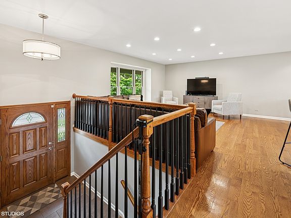 Bright, updated & move-in ready - a true gem in Pepper Tree Farms! This sought-after 4 bedroom, 2.5 bath home checks every box with its light filled, open-concept layout, gleaming hardwood floors, and seamless flow throughout. Step into the welcoming foyer with modern tile, updated carpeted stairs (2023), and freshly painted spindles (2025). The remodeled kitchen shines with sleek stainless steel appliances, a gorgeous picture window overlooking the backyard, a large island offering seating and storage, and a modern design that blends beauty and function. Adjacent dining and living areas make entertaining a breeze, flowing effortlessly onto the deck and down to a lush, private backyard oasis, ideal for outdoor gatherings, play, or simply relaxing. The spacious primary suite features elegant crown molding, dual closets, and a stunning remodeled ensuite (2020) with an oversized glass shower, stylish tile, new vanity, new toilet, and lighting. Two additional freshly painted bedrooms share an updated hall bath (2024) with new fixtures and vanity. The expansive walk-out lower level offers even more living space with brand-new vinyl flooring (May 2025), a generous family room that opens to a charming paver patio, fourth bedroom/home office, bathroom, laundry room (new washer 2023), and an attached 2-car garage with a new garage door (2024) and an extra bay for storage solutions. Many recent upgrades include a new roof, shutters, and gutters (2024), wood fence (2023), exterior and interior lighting, landscaping, and more! Tucked on a quiet street just moments from top-rated schools (Lincoln Elem, Sundling Jr. High, Palatine HS), parks, shopping, and vibrant downtown Palatine. Residents enjoy access to a pool, tennis courts, and playgrounds. This home has it all - style, space, and smart updates. Welcome home!