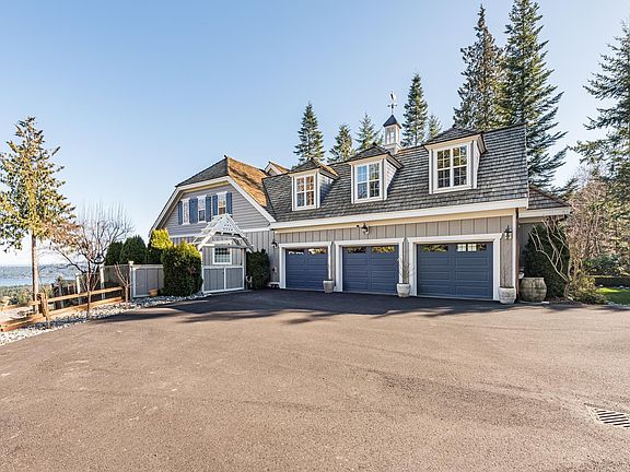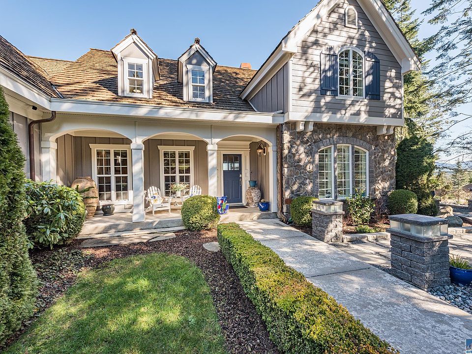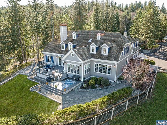 Stunning water view home with a rarely found attention to detail providing beauty at every turn. Superb curb appeal from this architecturally designed home, all framed by incredible landscaping. All essential rooms are found on the main floor to include the primary bedroom and 2nd BR suite, large living room w/world class views, kitchen, formal dining, handsome office and 3 car garage. Upstairs offers 3 more BRs, 2 of which are suites, large bonus room w/exercise area & infrared sauna, plus sink.