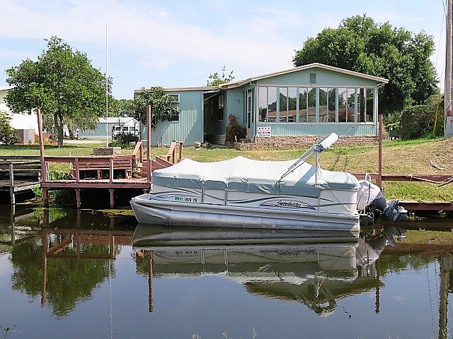 Beautiful Fleetwood with lots of room to entertain! Step into the light in your large air conditioned Florida room with panoramic views of the canal. Windows have mirrored reflective coating to repel heat and provide privacy. Very well maintained home has updated plumbing, 2014 HVAC, and 2010 metal roof over. Huge workshop with benches. Retirement is looking much brighter with this great home and wonderful community. Act fast to make this on yours! LB8907