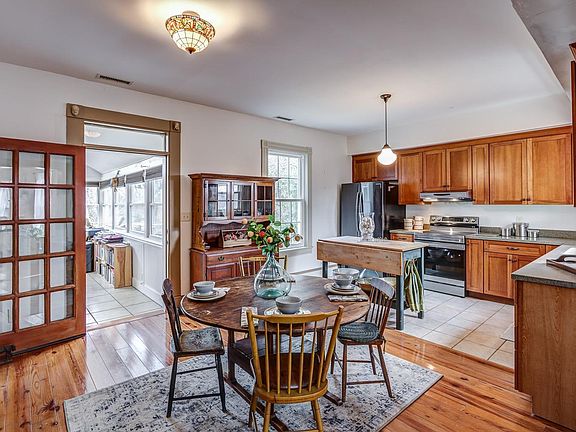 Enjoy today's modern comforts in this charming 3 bedroom /3 full bath home in the heart of Amherst, VA. Don't let the curb appeal fool you -this home is much larger than it appears form the street, with a thoughtful open floor plan that blends charm with modern living. Beautiful hardwood floors flow throughout the main living areas and bedrooms. Updated kitchen is a chef's delight, with stainless appliances and loads of counter space/cabinets. Butlers' pantry provides extra sink & tons of extra storage & work areas. Relax in the sunroom, currently used as a spacious den, offering lots of natural light and perfect space for gatherings. Main level also features great room with fireplace, main level full bath/laundry. Upstairs offers primary w/ full updated bathroom, two additional bedrooms, reading nook/office with window seat, built-ins, 3rd full bath. Storage building w/ electricity, Metal Roof (2013), Vinyl siding Updated windows (2018), Heat Pump, rocking chair front porch.