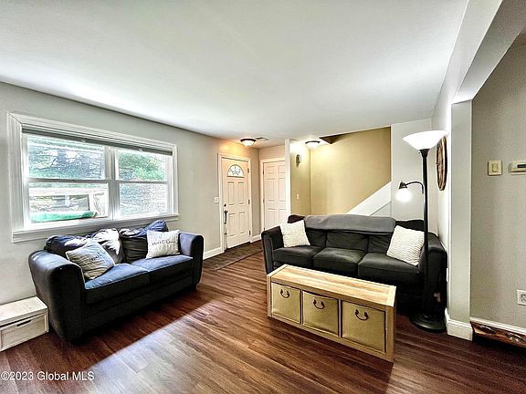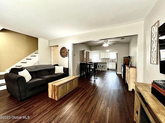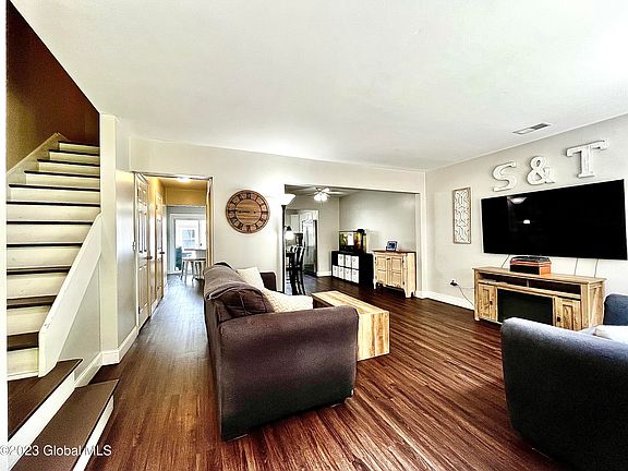 Perfect opportunity to get into this totally updated townhouse in convenient Glenmont. 153D Hague is in move in condition and ready for the new owners. Open floor plan leads you from the living room to the dining area to the fabulous kitchen with huge island. Gather around for pot luck or buffet style entertaining! Stainless appliances, built in buffet area and french door to the courtyard area which leads to your 2 car garage. Upstairs is the laundry closet, updated hall bath and bedroom along with the primary bedroom and full bath. Each bedroom has a walk-in closet. HOA covers lawn care, snow removal and tennis & pool areas. Easy affordable living at it's finest! Minutes to shopping, restaurants, schools and all major highways. Don't delay call for your showing today!