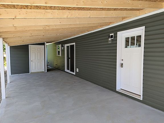 Custom floor designEat-in kitchenCovered carportOutdoor spaceCarpet and vinyl flooringLaundry hookupsWalk-in shower