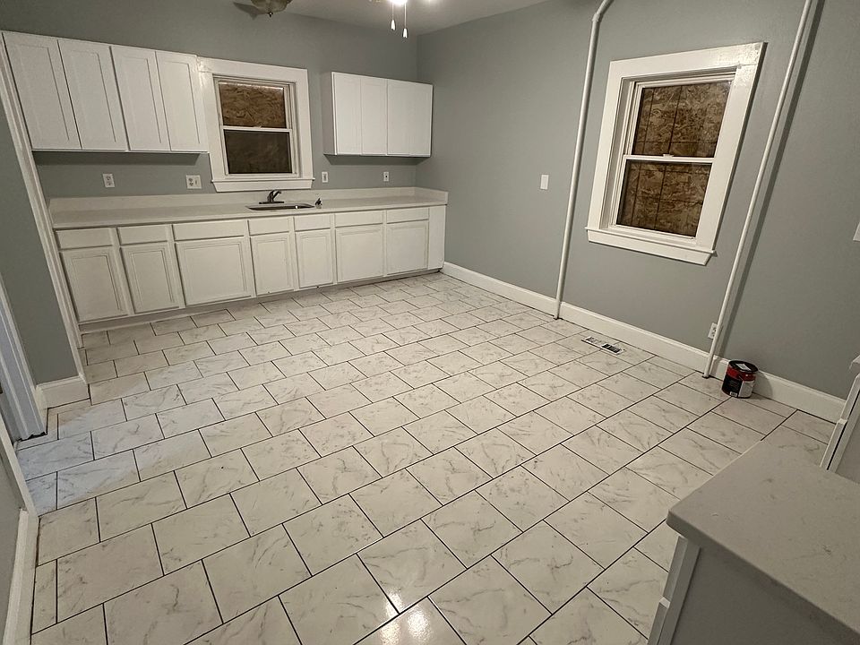 Washer and dryer hookupsSeparate laundry roomEat in barStylish vinyl floorsHuge backyardGorgeous updatesTile floors