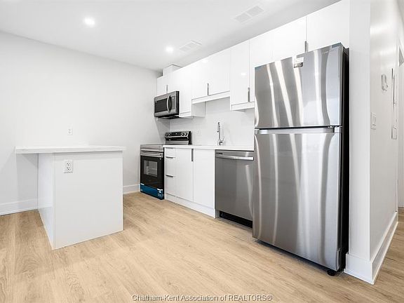One month free on a one year lease! Discover luxurious living in downtown Chatham! Embrace a unique lifestyle with breathtaking views in this brand-new 1 bedroom unit. Featuring a spacious, neutral-toned kitchen with quartz countertops and elegant luxury vinyl plank flooring throughout, this unit is designed for modern comfort. Enjoy the convenience of in-suite laundry and a stylish bathroom complete with a walk-in shower. Unit includes new dishwasher, fridge, stove, washer and dryer. Hydro and parking are in addition to the monthly rent.