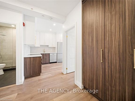 Step into something extraordinary. This brand-new, never-lived-in 1-bedroom unit in the heart of historic downtown Milton is where old-world charm collides with bold, modern luxury. Framed by a striking sage green door, the vibe starts before you even enter. Inside, its all about rich hardwood floors, custom marble-tiled bathrooms with heated floors, luxury crown molding, and gold-accented lighting that nods to the buildings timeless character while delivering sleek, high-end appeal. The modern kitchen is made to impress, with stainless steel appliances, soft-touch cabinetry, and oversized window sills that flood the space with natural light. The open layout and high ceilings bring serious loft energy, while the versatile den offers space to create whether its a home office, guest nook, or cozy media zone. Set in a boutique building with a beautifully curated common hallway, you're surrounded by heritage vibes and design-forward finishes from the ground up. Live steps from La Toscana, Pasqualino, the Farmers Market, schools, parks, and major highways. This is more than a place to live - its a lifestyle with character and class.
