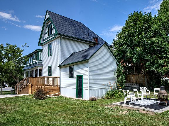 Step into a beautifully re-imagined century home built in 1914, where historic character and thoughtful craftsmanship come together on a spacious, tree-lined lot in the heart of Seeleys Bay, just a short drive to Kingston and Gananoque.This fully renovated residence welcomes you with a sweeping wrap-around porch and a sense of warmth that continues throughout. Original hardwood floors, rich wood trim, and a graceful staircase speak to its heritage, while tasteful updates enhance comfort and functionality.The main floor features a custom kitchen with all new appliances, a versatile bonus room off the kitchen, and convenient main-floor laundry. Upstairs offers three generously sized bedrooms and an enclosed upper deck ideal for quiet moments or entertaining. Above, a finished attic provides endless possibilities as a primary suite, creative studio, games room, or private retreat. Additional features include: Stylishly updated bathrooms with ceramic tile and modern fixtures Full, dry basement with abundant storage, new septic tank, new wellhead and pump, updated electrical panel, newer furnace and mostly new or newer windows throughout. Detached garden shed and additional storage space. Located next to a community-use building (formerly the fire hall), the home enjoys high-speed internet access with Bell Fibre installation scheduled by late 2025. Seeleys Bay is a vibrant, full-service community offering essentials and more including grocery, LCBO, pharmacy, medical clinic, library, gym, and even a chocolatier, all within walking distance. Boaters and outdoor enthusiasts will love the proximity to parks, playgrounds, and free public boat launch on the Heritage Rideau.A rare blend of history, space, and purpose, this home is ready to support the lifestyle you've been looking for.