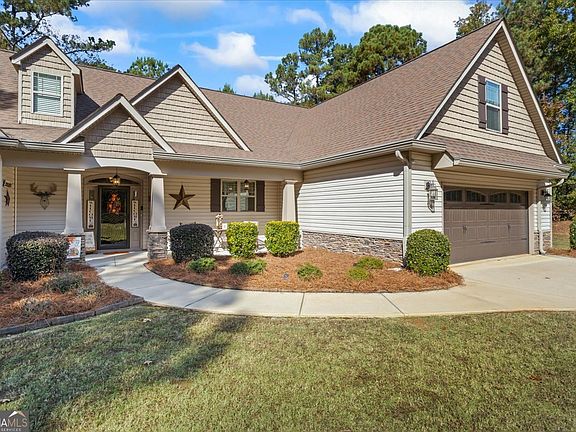 Charming Craftsman Ranch Near Jackson Lake! Welcome home to this beautifully designed 3-bedroom, 2-bath home with a bonus room over the garage - the perfect blend of comfort, charm, and functionality. Built in 2018 and nestled on 1.25 acres, this property offers room to spread out while still maintaining a warm, welcoming feel. Enjoy outdoor living at its best with a custom firepit, a partially fenced backyard, and a screened-in back porch ideal for relaxing or entertaining. The rocking chair front porch adds the perfect Southern touch! Step inside to find an open floor plan with a spacious family room featuring a wood-burning fireplace with stacked stone hearth, and a large dining area perfect for gatherings. The gourmet kitchen is sure to impress with custom tile backsplash, stainless steel appliances, vent hood, and ample cabinetry. The primary suite is a true retreat, showcasing a luxurious bath with an oversized tub and a custom tile shower with frameless glass. The secondary bath also features a beautifully tiled, frameless glass shower, ensuring both style and sophistication throughout. Additional highlights include laundry/mud room, walk-in pantry, an oversized two-car garage, ample parking with a pad for your boat, and a storage building in the rear yard for extra convenience. You'll love being a few turns from Reasor's Landing boat ramp and Fire & Ice Restaurant, offering quick access to Jackson Lake for endless weekends of fun. This home truly has it all - modern comfort, thoughtful craftsmanship, and an unbeatable location near the lake! Lot extends past the rear fence