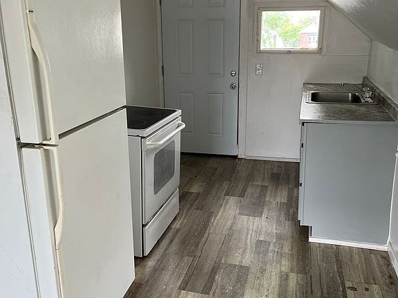 One bedroom upstairs apartment with private entrance at the rear of the building. Must be comfortable with walking up and down steps to access this unit. Large living room area. Kitchen comes with stove and refrigerator. Street parking only. Tenant pays water bill in the amount of $118 directly to landlord each month with the rent. Total amount due is $568 per month for this unit ( Base rent $450 plus $118 water = $568 ). Security deposit required with one year lease. No pets and no HUD.