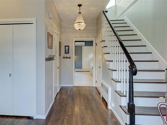 This beautiful Colonial located in the Moses Brown school area is a must see. The spacious interior is apparent the moment you enter the front door in to the picturesque entry way with beautiful stained glass windows. From the large living room with ample light that opens in to the dining room, the half bath, to the beautifully renovated kitchen with stainless steel appliances, a large granite island, window seat and plenty of storage, you can appreciate this even more. Also on the first floor there is a large family room with an abundance of light and sliders that open on to a deck over looking the partially fenced in backyard and patio, with stairs for easy access to the yard below. The second floor offers a master bedroom with updated bath and ample closet space. There are three additional bedrooms and another updated full bathroom. The third floor has an ensuite with a bedroom, sitting area, full bath, built ins and closet perfect for guests or a family member. The full basement with half bath is being utilized as an office, additional family space and storage. In addition there are beautiful refinished and new hardwoods on the first and second floors, Air conditioning, a 2 car garage, security system and solar panels owned by the sellers.