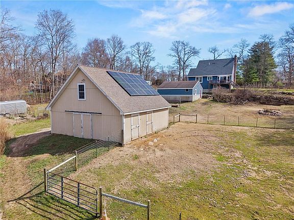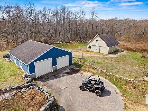 HIGHEST AND BEST by TUESDAY, 04/22/25 @ 6:00 PM. Experience peaceful country living in this charming 3-bedroom, 2 ½ bath Colonial, set on a sprawling 17-acre compound. This property offers the quintessential country lifestyle, complete with space for horses and a remarkable 4-stall barn with a loft for your equestrian pursuits. A lovely covered front porch welcomes you, inviting you to unwind in the serene surroundings. The expansive yard provides endless opportunities for outdoor activities, whether exploring the grounds or enjoying a picnic under the stars. Inside, you'll find a spacious eat-in kitchen bathed in natural light. The light-filled dining room connects seamlessly to the outdoor deck, ideal for entertaining or enjoying meals with picturesque views. The inviting living room is the perfect spot to cozy up beside the wood stove on chilly evenings. The main level features a convenient family room, half bath, and laundry room for practicality. Upstairs, discover 3 generously sized bedrooms, including the primary bedroom with a private full bath. An additional full bath serves the other two bedrooms, ensuring comfort and privacy. The full walk-out basement offers endless possibilities for customization to fit your lifestyle. Enjoy nearby hiking at Canonchet Brook Preserve or relish the expansive 17 acres, perfect for nature lovers and animal enthusiasts. Don’t miss this rare opportunity to claim your piece of country paradise.