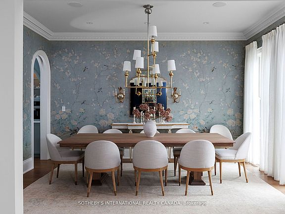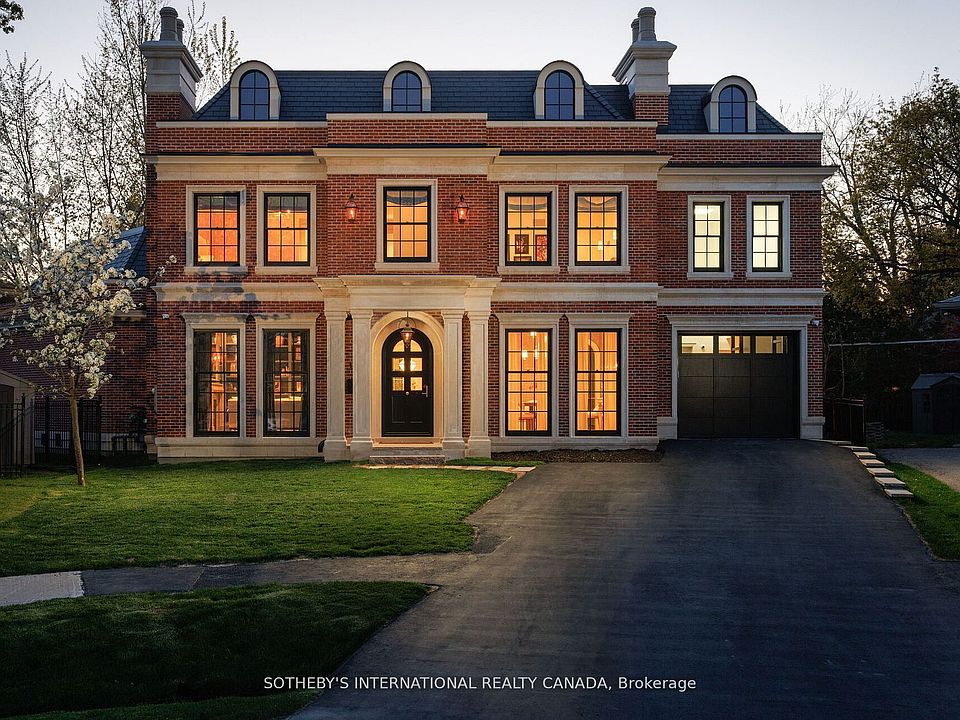 Nestled on a quiet cul-de-sac, this stunning Georgian-inspired estate offers nearly 9,000 sq ft of total living space on a rare pie-shaped lot backing onto the private Islington Golf & Country Club. Designed by New Age Design Architects, built by Easton Homes, and styled by Olly & Em Interior Design, the home exudes timeless elegance with its red brick and Indiana limestone exterior, black synthetic slate roof, and custom Lowen Douglas fir wood windows. Inside, the main floor features a luxurious primary suite retreat, an entertainers dream kitchen with Lacanche gas range, Miele appliances, and honed quartzite countertops, and elegant living spaces warmed by gas and electric fireplaces. Upstairs offers three bedrooms plus a lounge (fifth bedroom) and a craft/hobby room or office, while the lower level includes a movie theatre, a full spa with sauna, steam shower, cold plunge barrel, a home gym, and a glass-enclosed car gallery with a hydraulic stack lift for three cars.The home is equipped with Control4 smart home automation, radiant in-floor heating on all levels, six zoned HVAC systems, and an advanced UV light air purification system. Outdoors, the rear patio invites year-round enjoyment with infrared ceiling heaters, a gas fireplace, and in-floor heating, plus future-ready rough-ins for a gas BBQ kitchen, snowmelt driveway system, and phantom blinds. With approved landscape plans by Partridge, the property is poised for extraordinary outdoor living.Located close to top schools, parks, golf, and major commuter routes, this residence offers a perfect blend of privacy, luxury, and lifestyle. Rare private rear golf course access offers a unique connection to nature year-round, making this an unparalleled offering for the most discerning buyer.