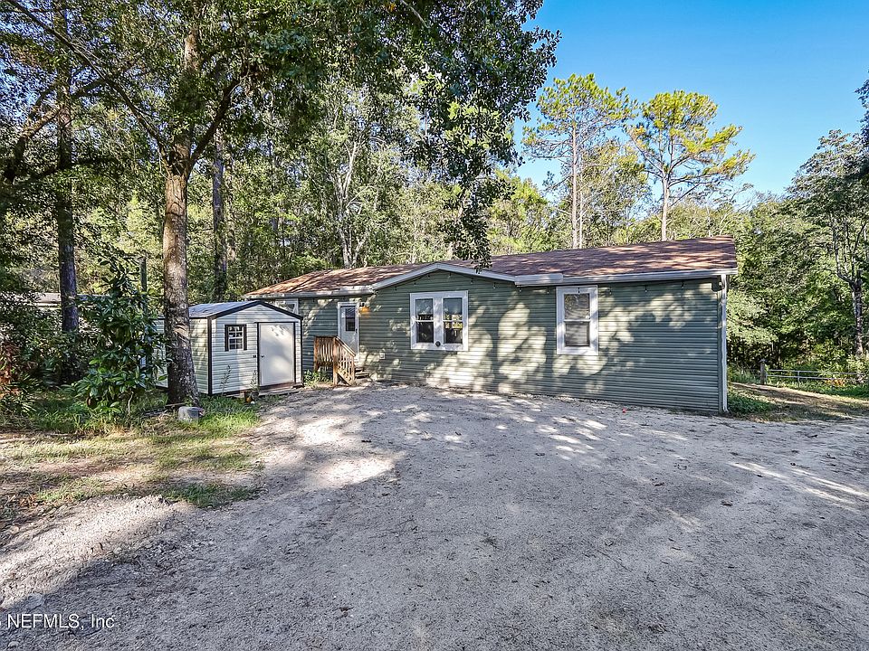 Immaculate 2023 TownHomes-brand manufactured home on a fully fenced 1.19-acre lot with an automatic gate! This 3BR/2BA home offers energy efficiency, privacy, and modern upgrades throughout. Features include LVP flooring (no carpet), stainless steel appliances, LED recessed lighting, low-e insulated windows, whole-home ventilation, 4-ton A/C, attic fan, and upgraded insulation with 2�6 outer walls�keeping bills low and comfort high. Exterior highlights include lap-down siding, gutters with French drain system, 10�12 shed (only a year old), 2 crawlspace access points, and a water softener system. Enjoy peaceful country living with easy access to Blanding Blvd, shopping, and dining. Move-in ready and built to last�schedule your showing today!