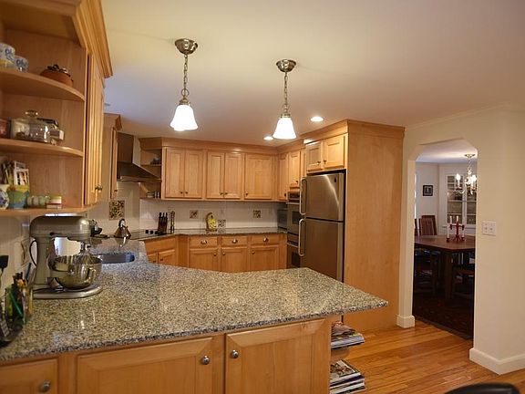 Nicely remodeled and updated Colonial in the desirable Ladder District of Needham. Wonderful open floor plan, but with separate formal living and dining rooms. Additional first floor private office near separate side entrance and mud room. Upstairs are 4 bedrooms, hallway full bath with tub, and a large master suite with vaulted ceiling, walk-in closet, and bath with shower. The basement has a large playroom with decorative fireplace, extensive storage space, bath with shower, laundry room. a new high efficiency boiler, and direct access to the backyard. Central AC, single car garage, private corner lot.