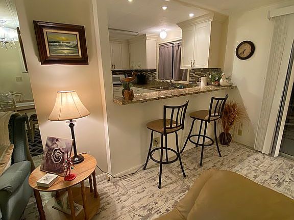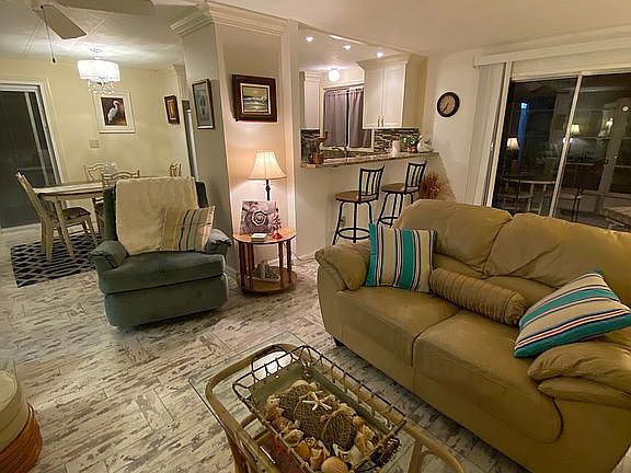 Cozy bungalow with airy lanai that has been totally renovated. Lanai has new, comfortable lounging furniture. Fresh paint throughout the house. New kitchen with granite countertops glass tile backsplash, and soft-touch drawers. New hardwood floors evoke a beachy comfort throughout the house. Both bathrooms have been renovated and new carpet installed in both bedrooms. Master bedroom has a spacious walk-in closet and en-suite bathroom. The property has a large shed that houses a variety of beach ware and two bikes. The house boasts a huge, private backyard that is only steps from the Myakka River. The property is in the coveted Lazy River community with Heated Swimming Pool & Spa, state-of-the-art Fitness Center, two Tennis Courts, Bocce, Shuffle Board, Pickleball, Marina with Slips, Kayak Racks, Golf Putting Green, Clubhouse, Full Woodshop, Welcome Center, & Storage Yard.