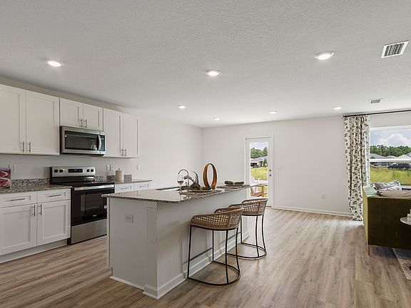 This amazing 2 story single-family home features 5 bedrooms and 3 bathrooms optimizing living space with an open concept feel. The kitchen overlooks the dining and great room, while having a view to the covered patio outside. Ample windows allowing natural light into the living area. The well-appointed kitchen features an island with bar seating, plentiful cabinet and counter space and stainless steel appliances, making entertaining a breeze. The first floor also features a flex room that provides an area for work or play, a bedroom, and full bathroom. As we head up to the second floor, we are greeted with bedroom one that features an ensuite bathroom as well as three additional bedrooms that surround a second living area, a full bathroom, and a laundry area.