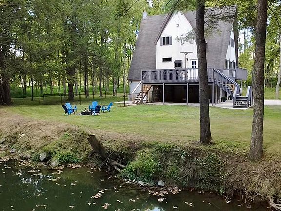 Enjoy beautiful views from the wrap around deck, complete with a hot tub and firepit- perfect for relaxing or entertaining. The fenced-in yard backs up to a flowing creek, offering privacy and serenity.