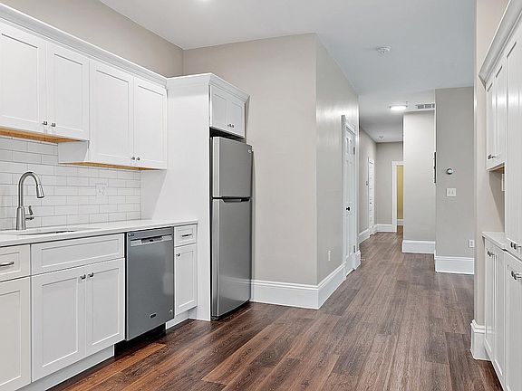 This huge, bright condo in a historic Victorian was recently renovated. The unit is 1300 square feet and truly feels like a home. The brand new kitchen is a dream, featuring custom white shaker cabinets, white Quartz countertops, stainless-steel appliances including gas stove, microwave, dishwasher, and fridge. There is also a wide peninsula counter with room for 2 stools and a custom "coffee bar." The eat-in kitchen area has an alcove for a desk and opens to a large, private back deck. The spacious primary bedroom at the front of the home has a large walk-in closet and the secondary bedroom (also west-facing) has plenty of room for a queen+ bed. Plenty of storage throughout, including a closet in the living room and coat closet in the foyer. There are 2 full bathrooms and a separate closet with front-load washer and dryer. Both bathrooms have been updated with new tiling and modern floating shelves for storage and display. The flooring is a light vinyl-plank wood (pictures are from a neighboring unit renovated in 2023 with darker floors). There is central air and gas heat. All new windows. A 10 minute walk to Malden downtown and a 15 minute walk to Malden Center's Orange Line T Station make this a perfect location or those who often make trips into Boston for work or fun! We are looking for excellent tenants that will treat this unit as their own. Renter is responsible for all utilities (gas, electric, water). Landlord pays for trash. No smoking.