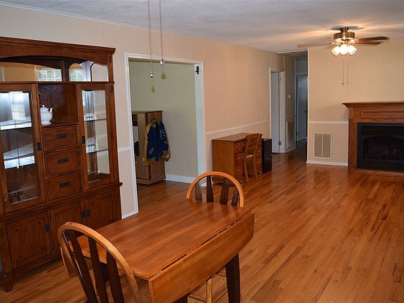 Adorable home that has been well maintained over the years. Beautiful hardwood floors through out the home. 3BR 1BA with updated kitchen. Newer custom cabinets with tile backsplash. Walk in storage room with extra storage. Bathroom tub and vanity has been recently updated. Kitchen overlooks den or family room with gas log fireplace. Front room could be a formal living or flex room. Newer updated vinyl tilt out windows. 2 outbuildings with electricity that adds extra storage to the home. Double carport. This home is situated on private 1 acre yard. This won't last long so call today.