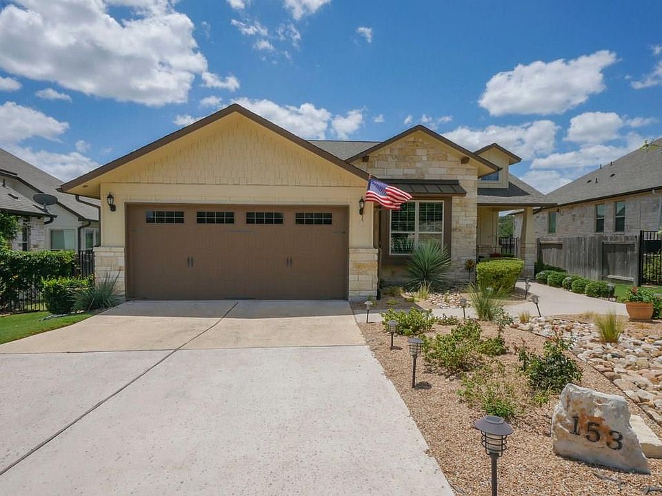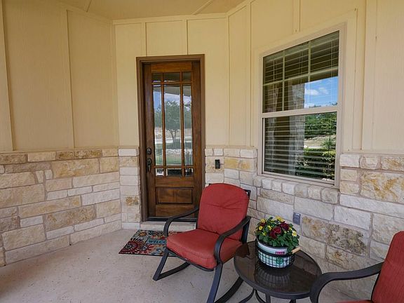Sought-after San Saba floorplan from Sitterle Homes. Lock & Leave lifestyle. One level home with wide-open kitchen,high ceilings, large island & plentiful counter space & cabinets. Built-in stainless steel appliances. Dedicated study with French doors. Wood blinds and plantation shutters. Covered patio with fireplace and upgraded outdoor kitchen. Window seat with built-ins and California closets in owner's suite. 10ft extension in the garage. Near walking trail, dog park, and community amenities.Restrictions: Yes Sprinkler Sys:Yes
