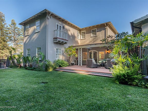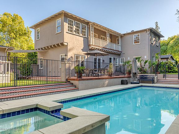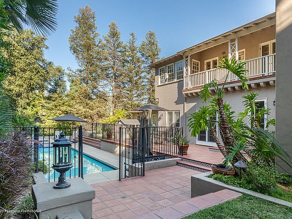 Set on a quiet street in one of Pasadena's most desirable neighborhoods, this beautiful San Rafael 1935 Traditional is the ideal home for California indoor/outdoor living. Thoughtfully rebuilt in 2001, this five bedroom, five bath home boasts sizable spaces while achieving the perfect balance of flow and functionality. The home's bright and airy living room features a barreled ceiling, double-sided fireplace, and multiple arched French doors that provide access to the home's front and back gardens. A large formal dining room leads out to a private patio and grass area - ideal for entertaining. The gourmet kitchen is the heart of the home and includes custom cabinetry, soapstone countertops, an eat-in area, and a walk-in pantry. The kitchen opens up to a spacious family room, which, in turn, opens up to a second patio and sparkling pool. The first floor also includes a bedroom, full bath, powder room, laundry room, and a library - perfect for a home office. Upstairs is the master suite with a private dressing room and dual walk-in closets, as well as an additional three bedrooms and two baths. Further, the home has a basement level (additional 750sqft), featuring a wine cellar and a large, useable bonus room/gym.