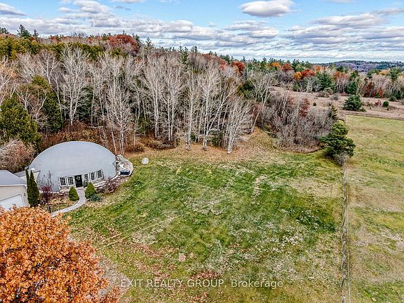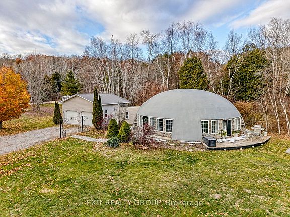 A rare architectural offering in Northumberland - this monolithic dome bungaloft blends innovative structural engineering, sustainable design, and elevated modern living across a private 3-acre setting with a serene pond. Designed for those who appreciate exceptional build quality and future-forward living, this insulated concrete home delivers unmatched energy efficiency, passive-solar performance, and remarkable year-round comfort. Inside, natural light accentuates the home's organic curvature and soaring volume, highlighted by 18-ft peak ceilings that create an airy, gallery-like ambiance. The main level offers 3 bedrooms and open-concept living anchored by radiant electric heating, polished concrete floors, and tranquil views of the surrounding landscape. A sculptural circular staircase leads to a 400 sq.ft. loft with half bath - perfect as a studio, private office, wellness space, or guest retreat. Engineered to surpass conventional standards, the monolithic dome structure is renowned for extreme durability and disaster resistance, offering peace of mind through superior strength, energy performance, and low-maintenance longevity. This home stands as a modern sanctuary - quiet, stable, and naturally temperate in every season. Outdoors, enjoy a peaceful connection to nature with mature trees, sweeping sky views, and a picturesque pond - an ideal landscape for wellness living, hobby homesteading, or simply unwinding in a private country setting. Perfectly located minutes to amenities, commuter routes, and Prince Edward County wine country. A truly extraordinary opportunity to own one of the region's most unique and enduring homes - where innovative architecture meets warm, minimalist luxury and quiet rural elegance.