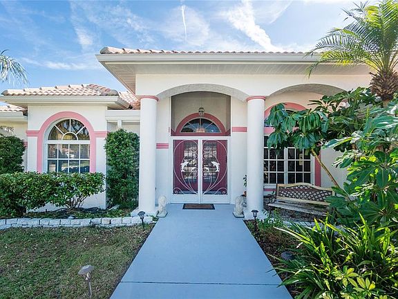 Youll benefit from the many updates this sought after CUSTOM BUILT HOME with a SPLIT BEDROOM floor plan offers. With almost 2200 sq ft under air including 3 bedrooms, 2 and a HALF bathrooms plus an extra large garage (23'x27' per county) including an air conditioned workshop(approx 7' x 14'). In addition there is a large Florida Room and a 15 X 39 Screened Enclosure with an in-ground heated HOT TUB(new heater 3/2022) and the half bath overlooking the canal. The Boral concrete TILE ROOF AND the 4 ton, 16 Seer Trane Air Conditioner were installed in 2021, both with transferrable warranties. The home also has a paid transferrable Select Home Warranty continued until March 2026. It's also zoned X Flood by FEMA (most lender won't require flood insurnce) and has public water and sewer. In addition to the tiled roof, curb appeal is highlighted with a CIRCULAR DRIVEWAY, mature landscaping, manicured lawn with a sprinkler system (canal fed) plus a large variety of fruit trees. The lot has plenty of room for the pool youve been thinking you might want someday. Upon entering the arched foyer youll love the PALATIAL FEELING overlooking the formal living/dining rooms with the SOARING CEILINGS, large sliding glass doors, 3 transom windows and bullnose drywall . To the left the spacious owners suite features a tray ceiling, newer carpet, sliders to the Florida Room, a huge walk in closet plus a gentlemens closet. Its ensuite bathroom has a ROMAN SHOWER, GARDEN TUB, DOUBLE SINK VANITIES and a linen closet. The Peninsula Kitchen overlooks all the open living areas and includes beautiful solid surface counters, white cabinets and a plethora of plant ledges. Both spacious secondary bedrooms are across the hall from each other and next to the 2nd full bathroom. One is used as an office with CROWN MOLDING, vinyl flooring plus a MURPHY BED with book shelves. The 3rd bedroom has a wall of closets and newer carpet. The inside laundry room has a sink, cabinets, a hang bar and leads to the oversized garage with the a/c workshop. A list of furniture for sale is also available. Rotonda West is a peaceful, upscale community situated near the Gulf of Mexico between Englewood/Manasota Key Beaches(<9 miles) and Boca Grande Beaches (<14 miles) with fishing, shelling and boating for all. Miles of picturesque canals, lakes and ponds wind through the community with 5 golf courses, 2 parks and miles of multi functional trails near by. Many exotic and beautiful birds call it home, as it is a designated Bird Sanctuary. Its the perfect spot to live your Florida lifestyle so call today to arrange your private showing.