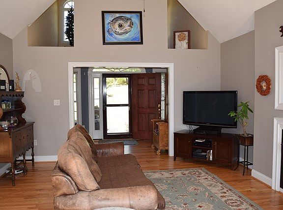 Enjoy the LAKE LIFE in this lakefront home located on BIG OPEN WATER. Step inside and discover all that this 4 bedroom,2 bath home has to offer. The moment you open the front door you are greeted by beautiful hardwood floors and wrapped in gorgeous lake views. The foyer invites you in and connects you to the oversized family room with fireplace, vaulted ceiling, and french doors that lead to a gigantic deck for outside entertaining or a peaceful evening. The dining room provides the ideal space to create new family memories and connects to the kitchen which hosts: wood cabinets, solid surface countertops, breakfast bar, and dining nook with lake views. The main level master bedroom en-suite includes tile floors, walk in shower, large jetted tub,double vanities, water closet,walk in closet, and access to the deck. The split bedroom floor plan gives added privacy from the two additional bedrooms and bath both perfect for children or guest. Upstairs you will find a spacious bonus room(4th bedroom). Exterior bonuses include: large acre lot, easy access to the water with pier, covered boat slip, and lift. Call today for your private showing,