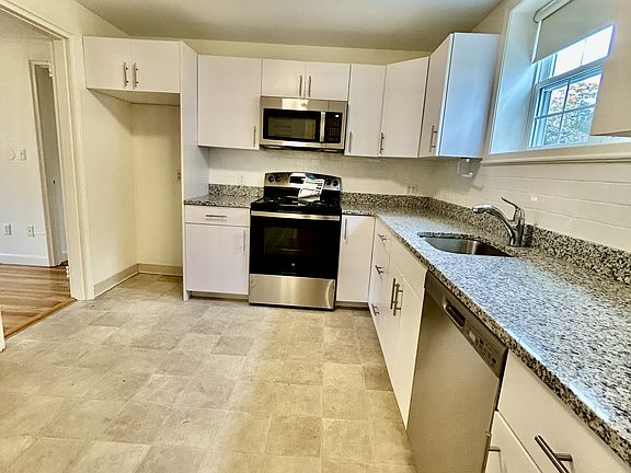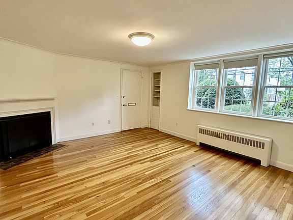 Ideal location steps to everything! Brand new granite counter tops, stainless steel stove, microwave and dishwasher installed! New stainless steel refrigerator coming this week. Beautiful first floor 2-bedroom corner unit, with windows on all three sides, right in Concord Center with just a short picturesque walk to the commuter rail, shopping, restaurants and the library. Beautiful hardwood flooring throughout living area, hallway and bedrooms. Linoleum in the kitchen. Tiled bathroom. Decorative fireplace. Washer/Dryer hookups in large walk in pantry off the kitchen foyer. Access to coin operated washer/dryer in neighboring building. Covered outdoor back deck, decorative fire place. Assigned parking up to two cars included in rent.