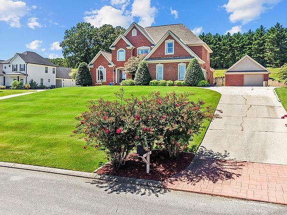 The main-level primary suite is a true retreat with trey ceilings, a spa-like bathroom featuring a five-head tiled shower, and a custom walk-in closet with built-ins. Upstairs offers three additional bedrooms, two with Jack-and-Jill access and one with a private ensuite, plus a spacious bonus room for added flexibility.