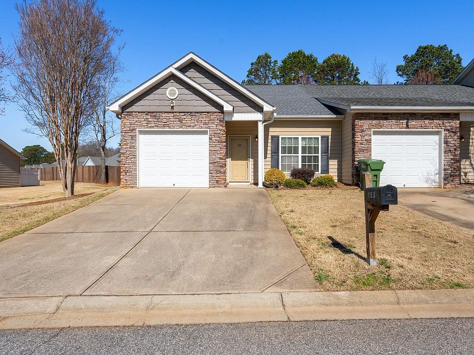 Charming End-Unit Townhome in Prime Greenville Location! Welcome to 153 Trailside Lane, Greenville, SC—a rare maintenance-free ranch-style townhome offering easy, one-level living in an unbeatable location! Just minutes from Butler Road, with quick access to interstates, shopping, grocery stores, medical offices, fitness centers, and more, this home provides both convenience and comfort. This end-unit townhome features 2 bedrooms, 2 full baths, and a single-car attached garage. The inviting open-concept design seamlessly connects the kitchen, dining, and living areas, creating the perfect space for entertaining. The kitchen offers plenty of cabinet storage, generous counter space, and bar seating for additional dining options. The spacious primary suite boasts a large walk-in closet, a double vanity, a soaking tub, and a separate shower for ultimate relaxation. The second bedroom and full bath provide excellent space for guests or a home office. One of the standout features of this home is the large screened porch, perfect for enjoying peaceful mornings or unwinding in the evening. With no stairs and true main-level living, this one-owner home is ideal for anyone seeking comfort, accessibility, and a low-maintenance lifestyle. Don't miss this rare opportunity—schedule your showing today!